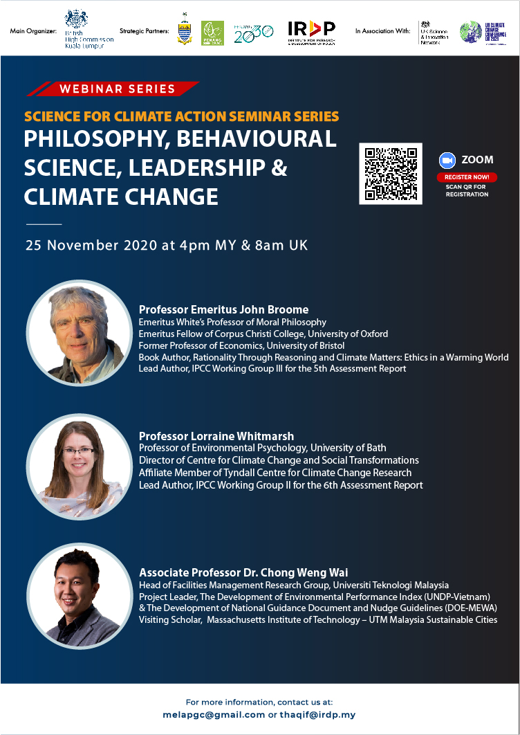 Science for #ClimateAction Seminar Series is back with session 5 on Philosophy, Behavioural Science, Leadership and #ClimateChange.